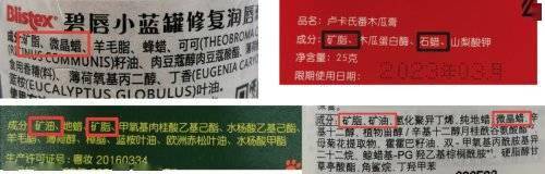 此次检测的12款润唇膏中,凡士林、珂润、DHC、科颜氏、卢卡氏、曼秀雷敦、伊丽莎白雅顿、依泉、Blistex碧唇、CARMEX小蜜媞10款均含有矿物油成分中的一种或多种。其间7款检出矿物油物质MOSH,而珂润、DHC、伊丽莎白雅顿三款或因增加量较少未检出。