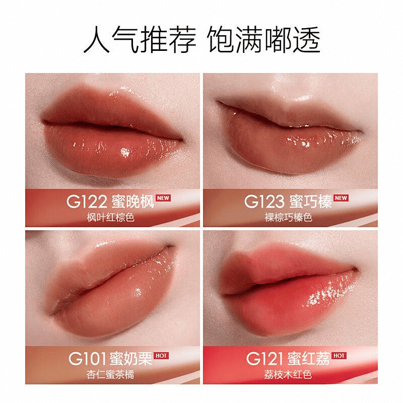 3️⃣独特水光质地:配方结合水精华和轻油脂,创造出不粘腻的水光质感,带来持久的水润体验。即使在干燥环境下,也不会影响唇部的柔软度与滋润感,随时随地都能享受自然光泽,展现年轻活力。