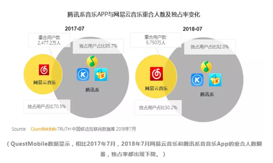 网易云音乐的步伐加速显示对百度加码的信念。百度对网易云音乐的导流与分发的支持无疑为网易云音乐创造了更多的可能性。QuestMobile 2018年9月多个方面数据显示,网易云音乐与哔哩哔哩、抖音的重合人数远超别的音乐APP,二次元、年轻、潮流特质突出,这说明网易云音乐的用户比较聚焦,但也说明用户增长上还有很大的上升空间。